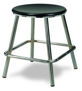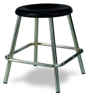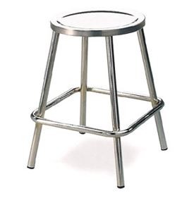 Fabricado con estructura en tubo acerado cromado y asiento redondo en acero inoxidable. Con cuatro patas para mayor estabilidad.