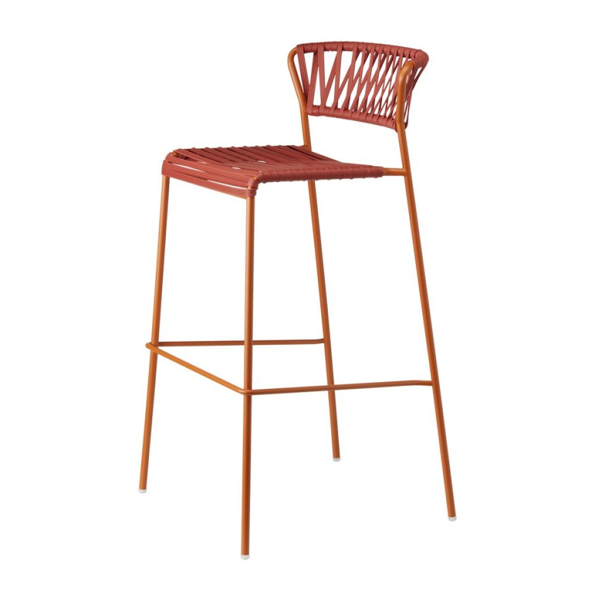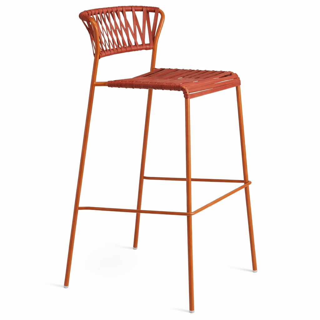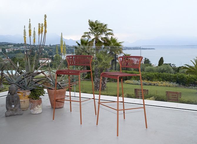 El taburete bajo Lisa fabricado con estructura en acero galvanizado pintado, asiento y respaldo en tejido por extrusión de PVC, es ideal ya que combina comodidad y elegancia. Informal y sofisticado a su vez, resulta perfecto para exteriores outdoor en terrazas de hotel o clubs náuticos.