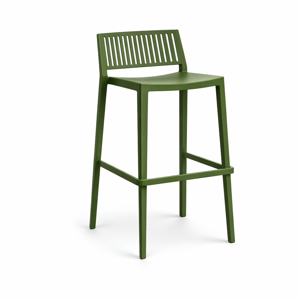 El taburete Bars en polipropileno y fibra es ideal para espacios interiores y exteriores, es muy usada en bares y restaurantes por su confort, diseño y resistencia.