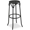 Taburete Charleroi fabricado con estructura en tubo acerado y asiento redondo en rejilla metálica. De uso interior.