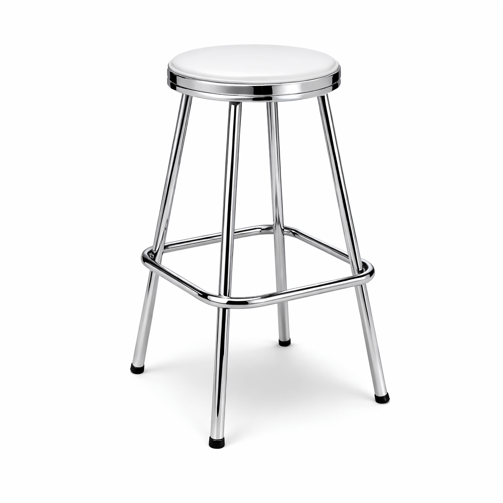 Taburete Coburgo fabricado en tubo acerado cromado.