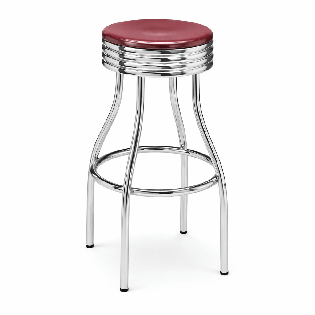 El taburete Colonia fabricado en tubo acerado cromado y asiento en madera contrachapada ,ideal para bares y restaurantes que quieran dar un toque vintage.