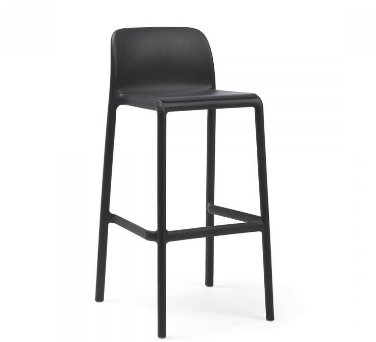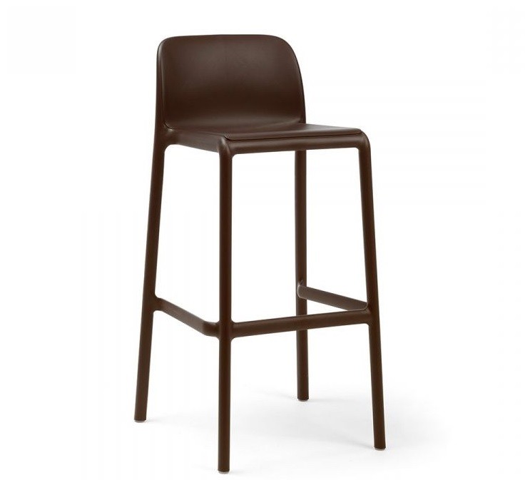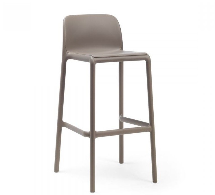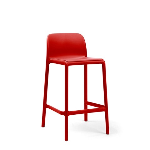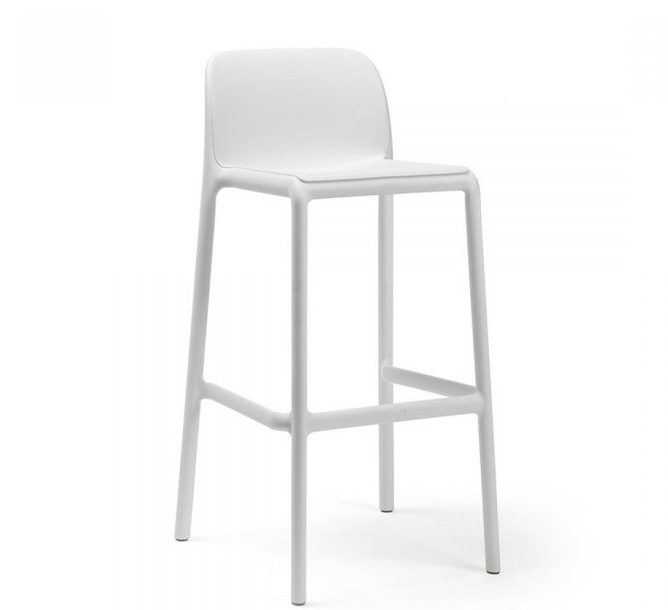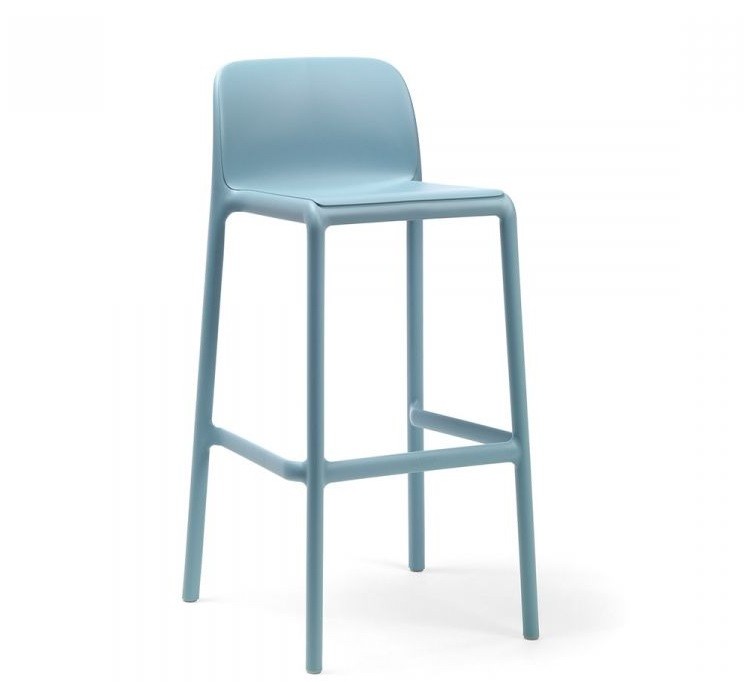 El taburete Faro de Nardi , en polipropileno y fibra de vidrio, es apilable y lleva tacos antideslizantes en las cuatro patas.