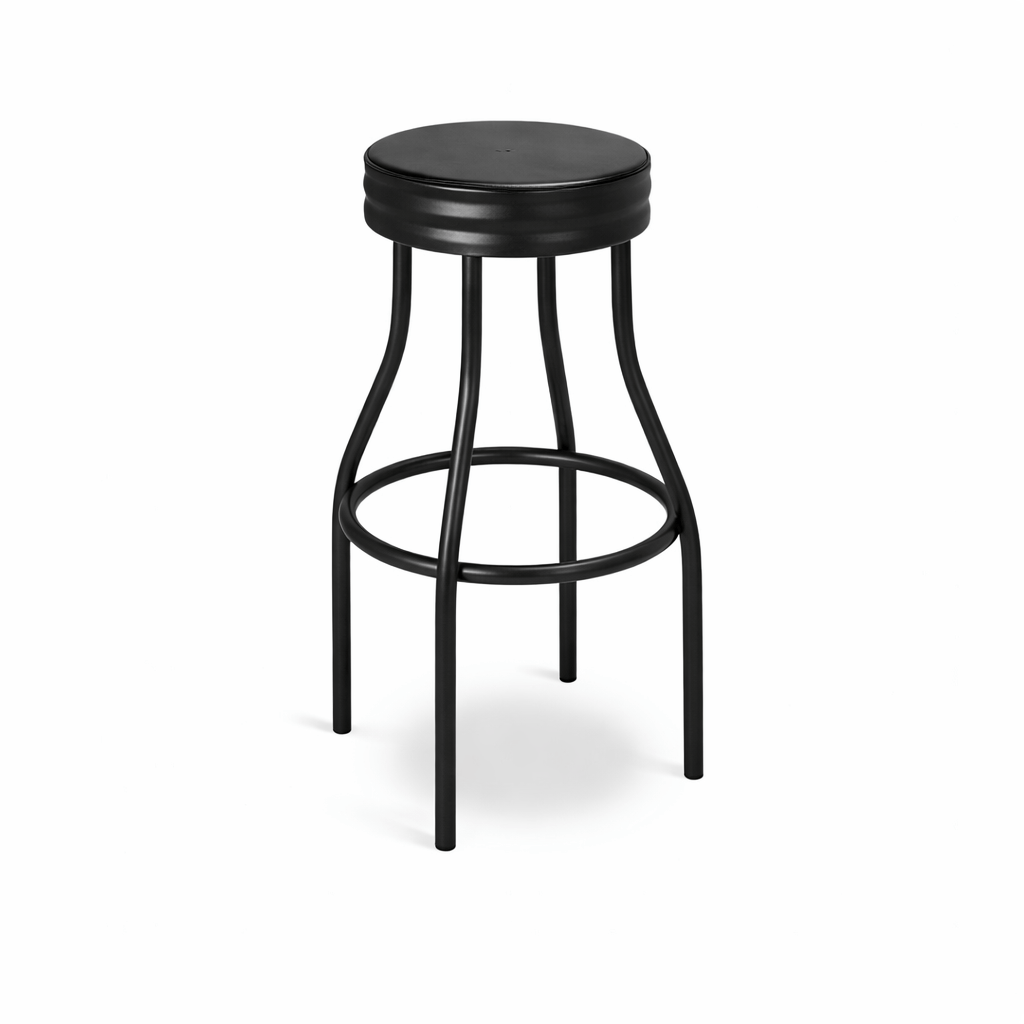 El taburete Fenix fabricado en tubo acerado en color negro, es ideal para bares y restaurantes que quieran dar un toque vintage y retro.