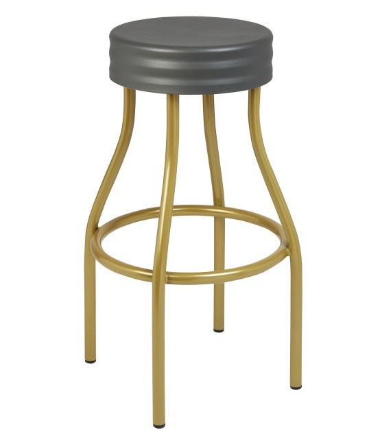 El taburete Fenix fabricado en tubo acerado en color oxirón, es ideal para bares y restaurantes que quieran dar un toque vintage y retro.