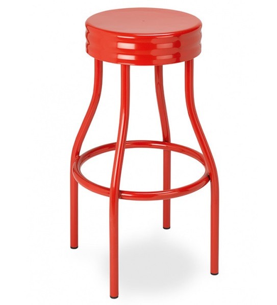 El taburete Fenix fabricado en tubo acerado en color rojo, es ideal para bares y restaurantes que quieran dar un toque vintage y retro.