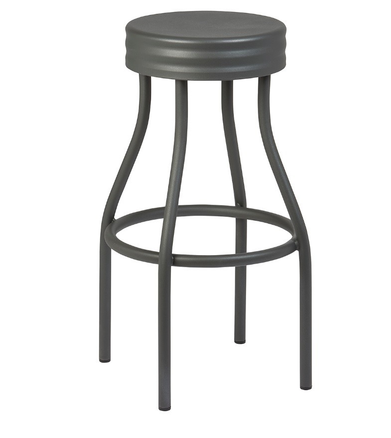 El taburete Fenix fabricado en tubo acerado en color titanio, es ideal para bares y restaurantes que quieran dar un toque vintage y retro.