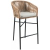 Taburete Tuka en aluminio y cuerda trenzada en color beige.