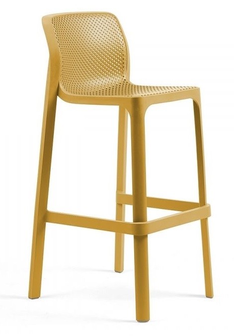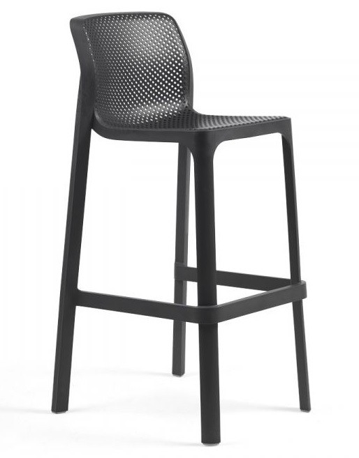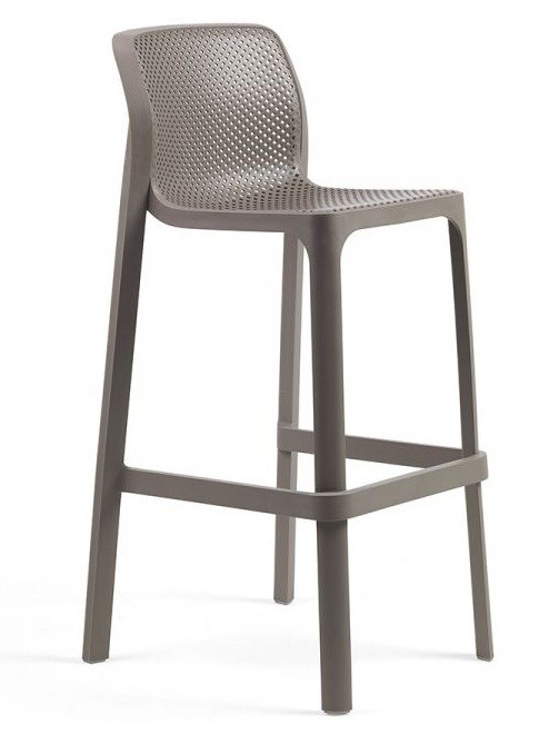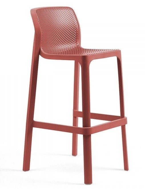 El taburete Net de Nardi en polipropileno y fibra de vidrio en varios colores,lleva tacos antideslizantes. Se puede apilar.