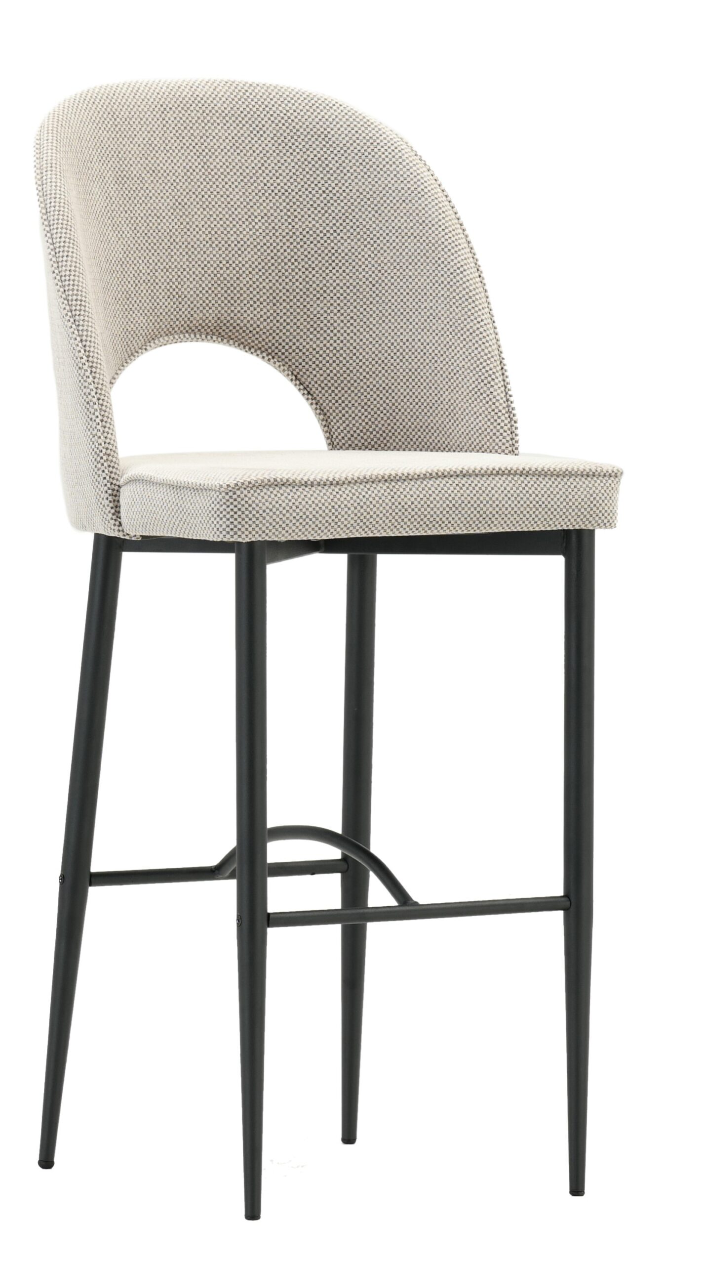 Taburete Reine tapizado en poliester color beige, es ideal para cualquier tipo de establecimiento que quiera dar un toque elegante.