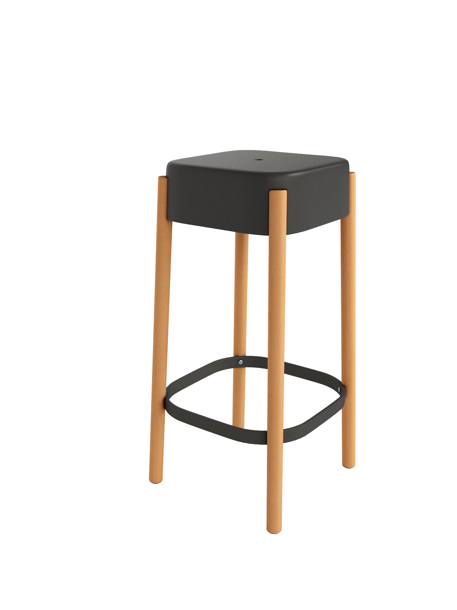 Taburete Visby en polipropileno grafito y patas en madera maciza.