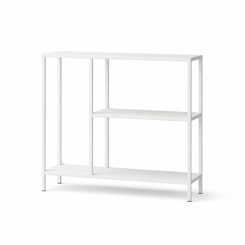 La estantería o recibidor Titania en metal, es una pieza de diseño elegante y contemporáneo perfecta para interiores de estilo industrial, moderno o minimalista.