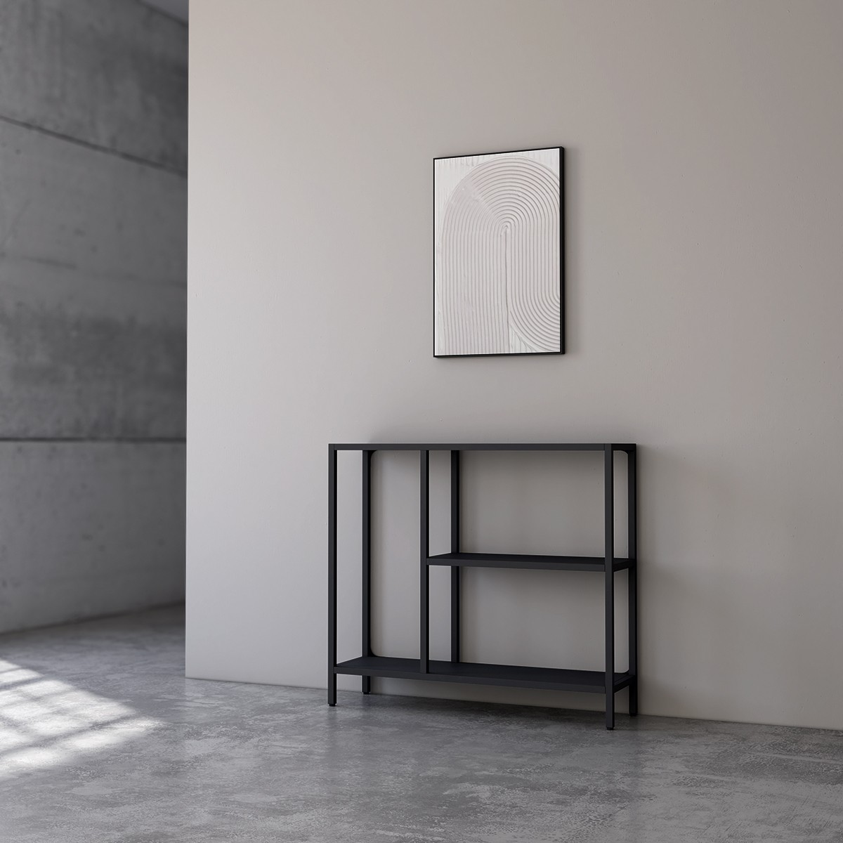 La estantería o recibidor Titania en metal, es una pieza de diseño elegante y contemporáneo perfecta para interiores de estilo industrial, moderno o minimalista.