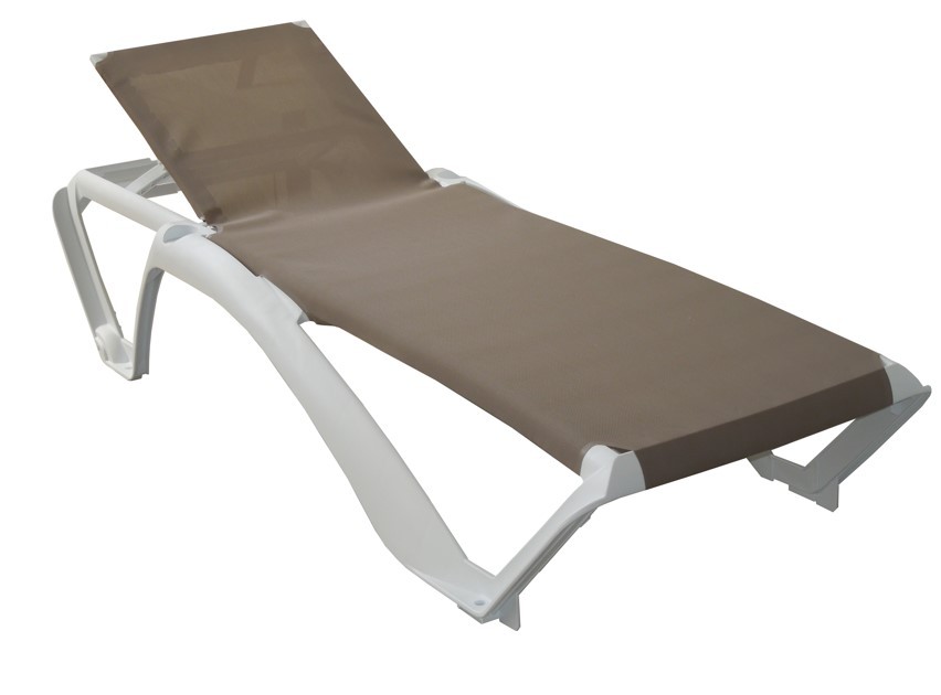Tumbona Acqua de Resol en polipropileno y fibra de vidrio en color blanco, textiline termosoldado para mayor resistencia. Es ideal para poner en piscinas, terrazas, jardines aportando elegancia y resistencia.