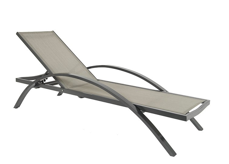 Tumbona Comfort de Resol, en aluminio y textiline gris claro.