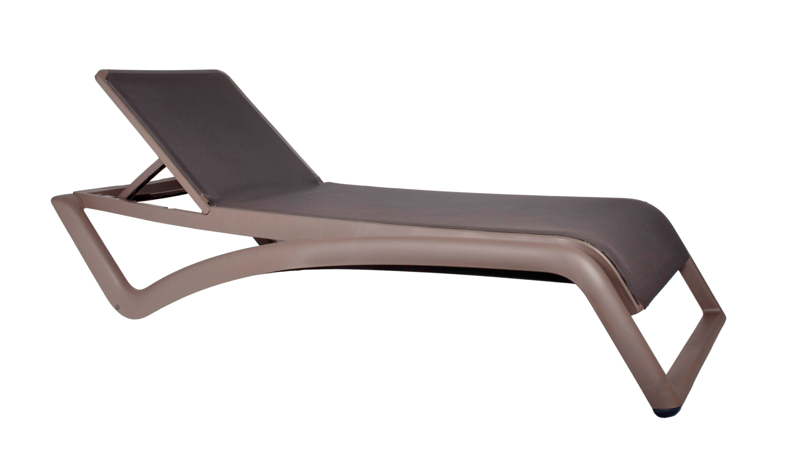 Tumbona Sky Club de Resol, fabricada con estructura de polipropileno y fibra de vidrio. Apilable y reclinable.