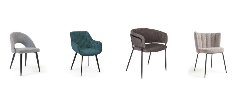 2. Seguimos por la silla rul tapizada y patas negras. Es una silla de pana gruesa con color gris oscuro y patas metálicas en acero acabado de color negro. Es un tipo de silla que luce muchísimo en salones al estilo americano o con meses grandes.
