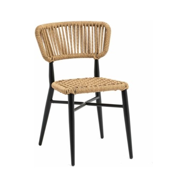 Silla Provenza ,estructura aluminio negro y cuerda color crema. De uso interior y exterior.