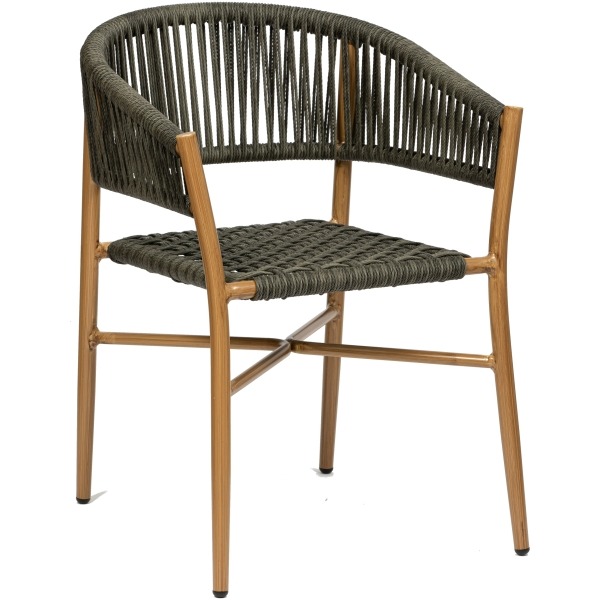 Silla con brazos Bora fabricada con estructura aluminio pintado deco bambú y asiento trenzado color atlas. De uso interior y exterior.