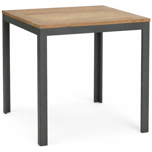 Mesa Teka cuadrada fabricada en aluminio y tablero en madera de teka.