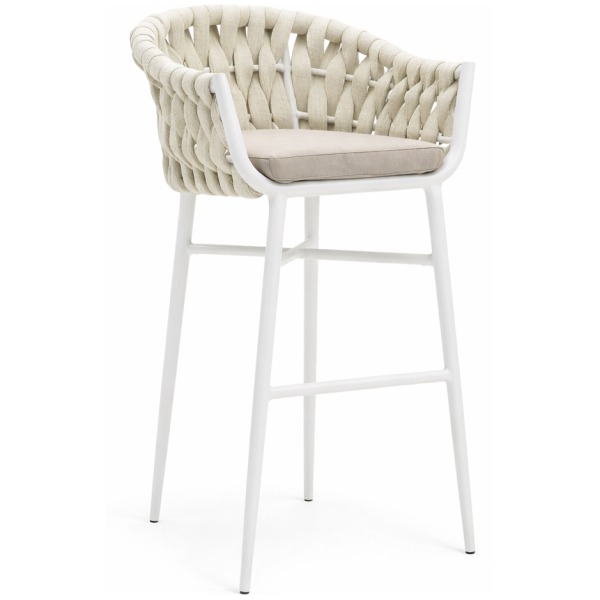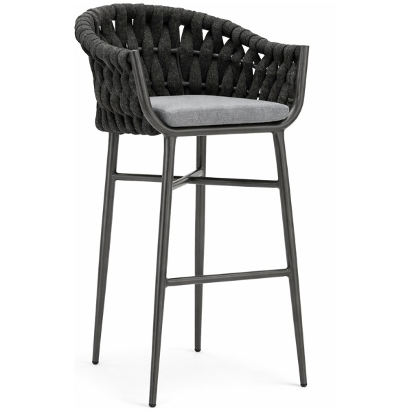 Taburete Viseu en aluminio antracita, asiento y respaldo en cuerda textiline antracita.