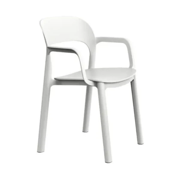 Silla Ona con brazos de Resol fabricada en polipropileno y fibra de vidrio.