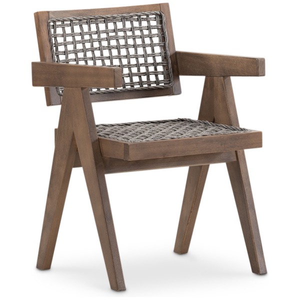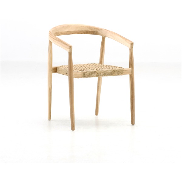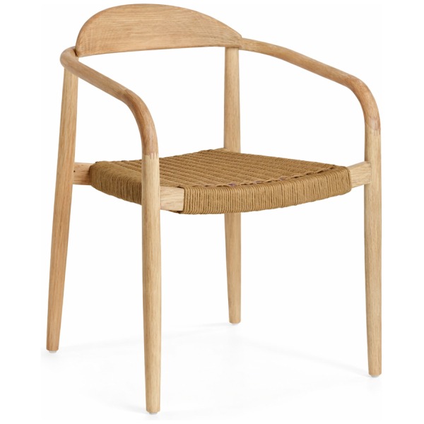 Silla Brisa con estructura de madera con brazos, asiento de cuerda natural.