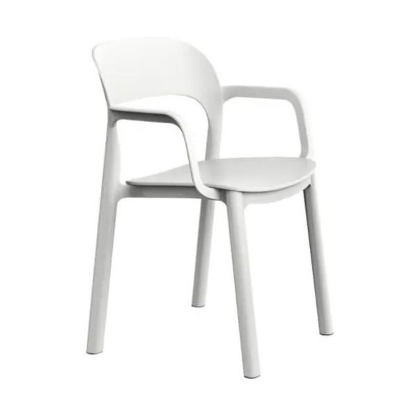 Silla Ona con brazos de Resol fabricada en polipropileno y fibra de vidrio.