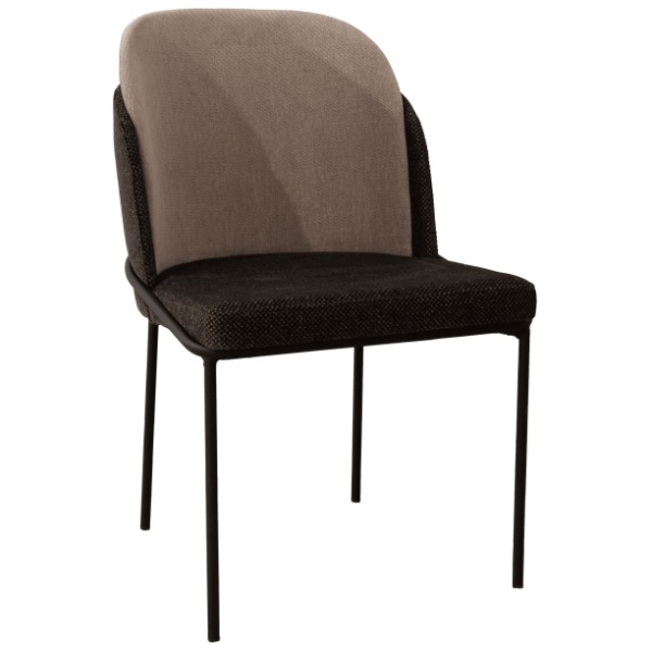 Silla Bergen tapizada 100% poliester crudo y tostado y chasis de acero negro.