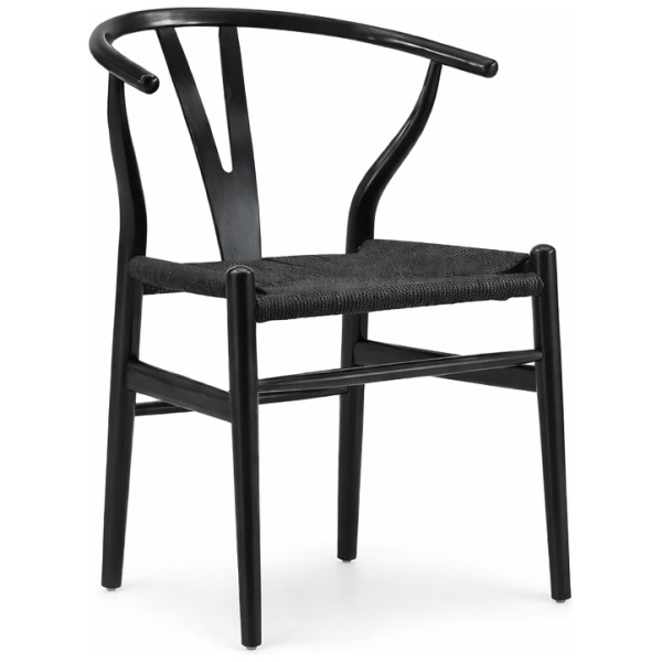 Silla Etna negra, con estructura de madera y asiento de cuerda natural.