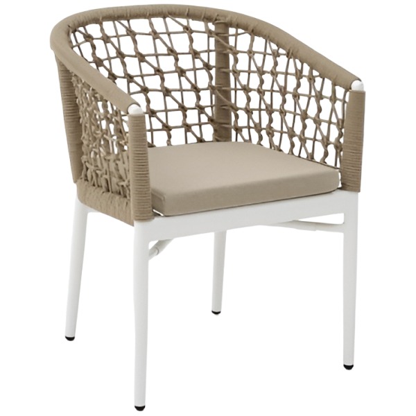 Silla con brazos Provenza fabricada con estructura aluminio y cuerda. De uso interior y exterior.
