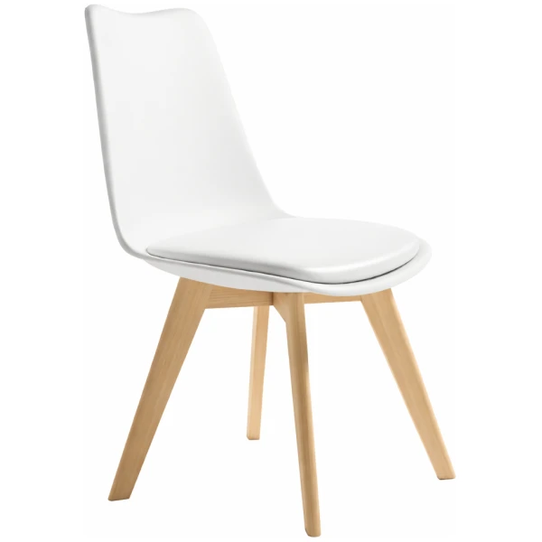 Silla Berlin en polipropileno blanco, con asiento tapizado en polipiel y patas en madera maciza de haya.