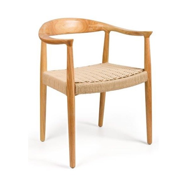 Sillón Yuta con estructura en madera de caucho color natural, asiento trenzado con hilo kraft, waterproof.